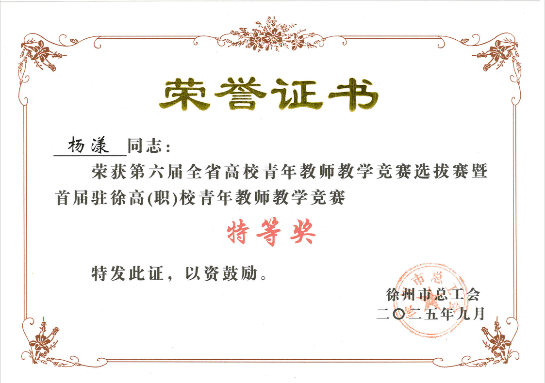 近日,第六届全省高校青年教师教学竞赛选拔赛暨首届驻徐高(职)校青年教师教学竞赛结果揭晓,我院教师杨漾喜获思政组特等奖。