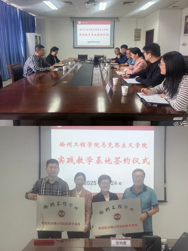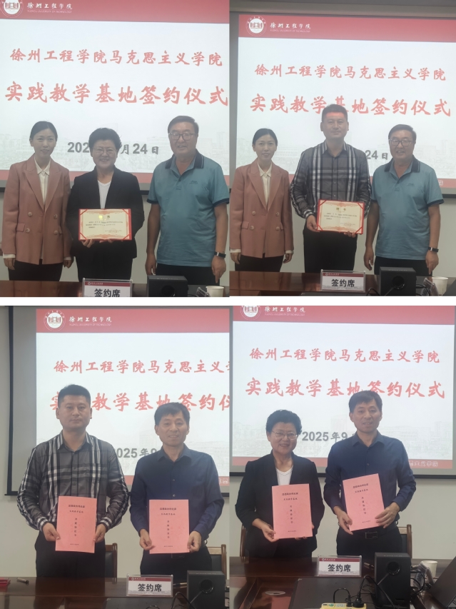 9月24日我院与运河支队抗日纪念馆、徐州市淮海新四军历史研究中心举行实践教学共建基地签约仪式。书记周慧、院长丁三青、副院长辛勤、运河支队抗日纪念馆胡军英馆长、徐州市淮海新四军历史研究中心理事长王龙及部分教师出席签约仪式。此次签约旨在深化校地合作,激活红色文化资源的育人价值,构建理论教学+实践体验的思政教育新模式。