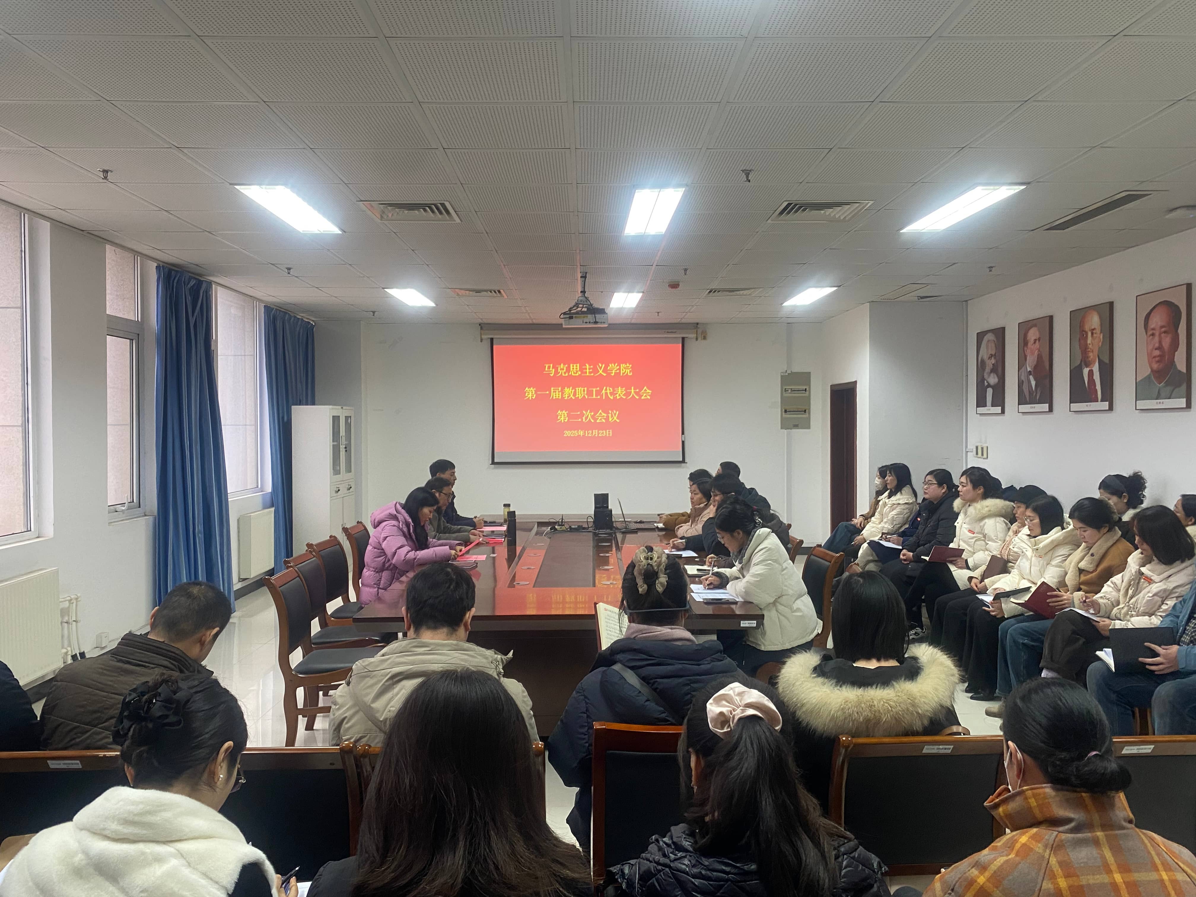 12月23日下午,马克思主义学院第一届教职工代表大会第二次会议在敬业楼412会议室隆重召开。学院领导班子成员和全体教职工参加会议。大会由学院分工会主席辛勤主持。